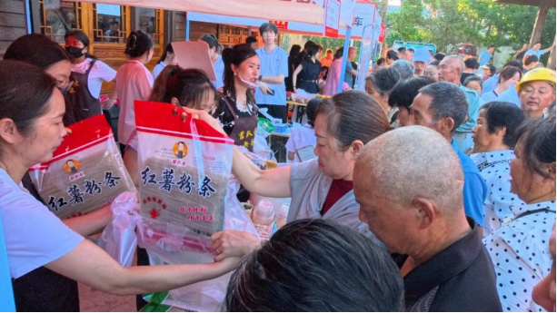 2025年7月5日,伟德官网阳光家园志愿服务队走进荆门市子陵铺镇八角村,在热闹非凡的大集现场开启“三下乡”助农直播,为当地特色农产品红薯粉“代言”,让这份乡村美味通过网络走向全国。