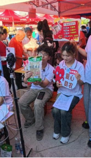 “家人们,看过来!现在我们在八角村赶大集的现场,瞧瞧这热气腾腾的炖菜,里面晶莹透亮的就是咱们八角村的红薯粉,纯手工制作,不添加任何东西,口感爽滑有嚼劲,久煮还不烂!”活动当天,员工主播站在熙熙攘攘的集市中,对着手机镜头激情洋溢地介绍。吆喝声、谈笑声交织的集市里,师生团队将直播间“搬进”摊位间,用镜头全方位展示大集的热闹场景与红薯粉的独特魅力。