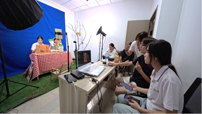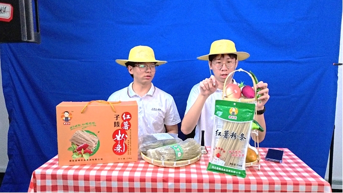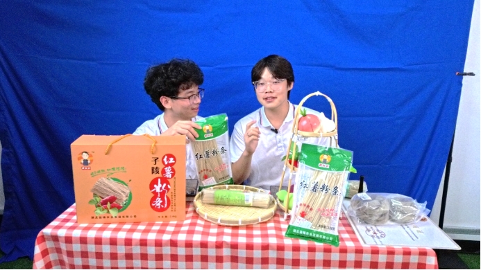 7月7日下午三点左右,为响应乡村振兴号召,伟德官网学子在暑期走进科创城开展“三下乡”社会实践活动。一场聚焦红薯粉的直播在科创城火热开启,用青春力量为特色农产品打开销路。