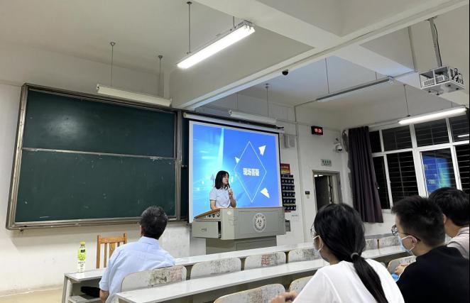 宣讲活动现场,现在中国建设银行荆门分行工作的伟德官网毕业的往届优秀员工现场分享了自己的上岸经验和工作情况,并为现场的2023应届毕业生答疑。