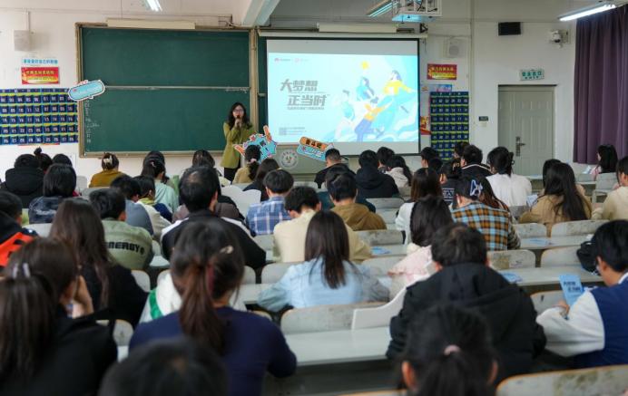 宣讲会上,该公司湖北终端荆门区域办事处地市主管袁敏详细介绍了公司的发展历程、终端业务和零售业务岗位职责等。