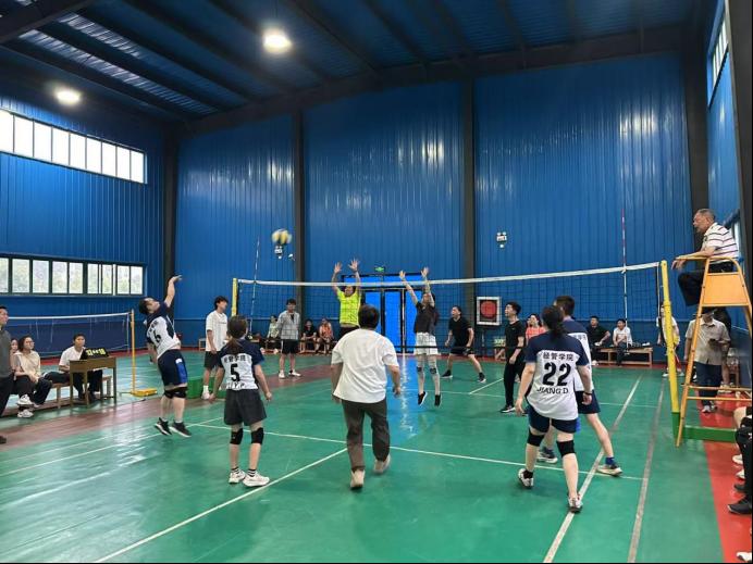 比赛伊始,公司教职工就展现了非凡的实力,顺利晋级。现场气氛热烈如火,双方队员你来我往,比分紧咬,精彩对决接连不断。伟德官网教职工代表队以昂扬斗志与默契配合,掀起一波又一波进攻浪潮。精准划出抛物线发球直击底线、队友心有灵犀的网前拦截、势如破竹的重扣得分,以及飞身鱼跃的极限救球,每一个高光瞬间都引得场边惊呼声四起。他们奋力拼搏,挥洒汗水,先后与文学与传媒公司、艺术公司、数理公司和体育部精彩对决,最终荣获二等奖的好成绩。